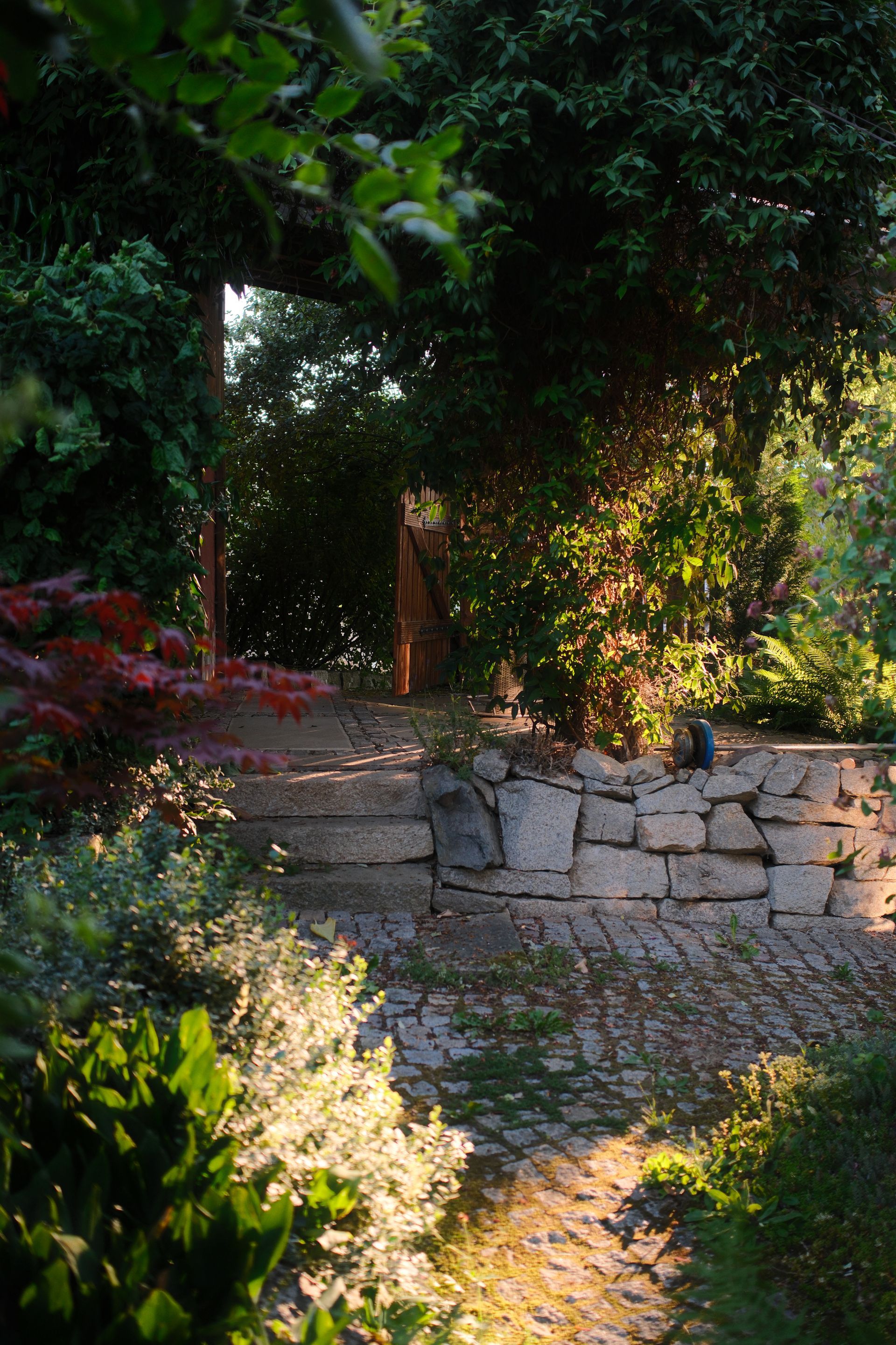 Der Garten ist weitläufig und schafft mit seinen verschieden Ebenen und Muschelkalkmauern südländisches Flair. Auf den großzügigen Terrassen hast du einen herrlichen Blick in den Garten aber auch auf das Herzstück von Wildscape, den Natur-Schwimmteich - ideal für eine Abkühlung nach dem Saunagang oder als Treffpunkt mit Freunden an warmen Sommerabenden. Es war uns wichtig, die zum Teil sehr alten Bäume auf dem Grundstück nicht nur zu erhalten sondern sie in Szene zu setzen und mit neuen und außergewöhnlichen Pflanzen zu kombinieren. Sie sind es, die Wildscape mit am meisten zu dem machen, was es ist - ein besonderer Ort, wo Natürlichkeit und Schönheit im Mittelpunkt stehen.